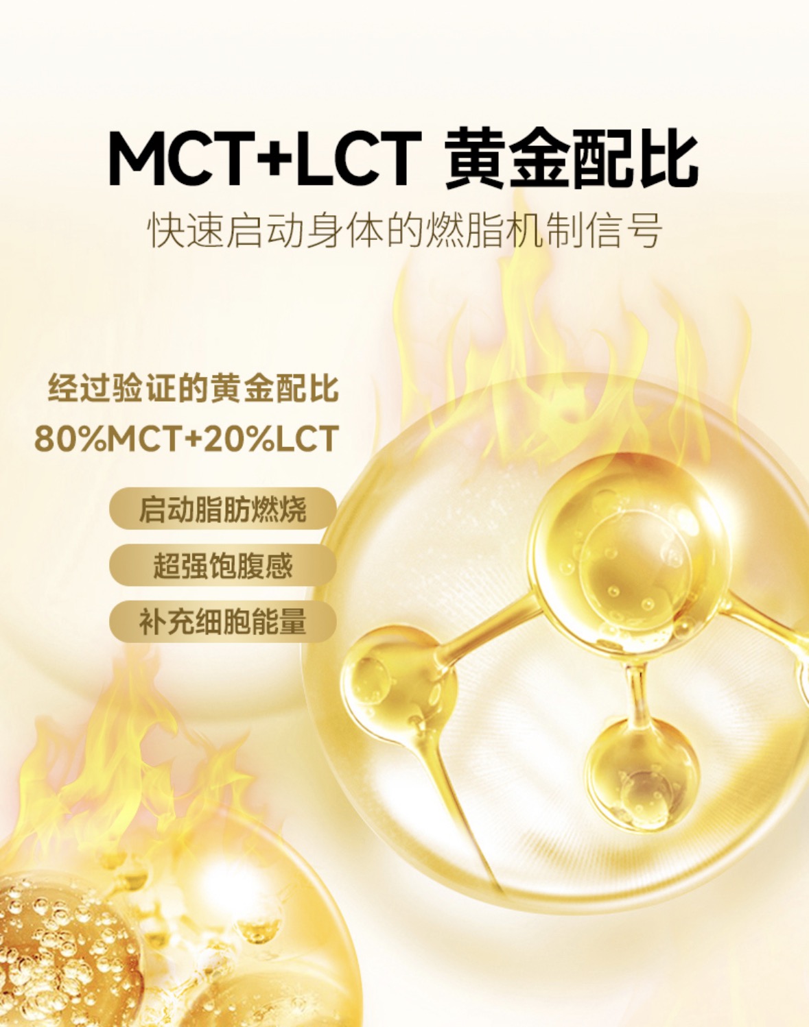 l 直达供能,不存脂肪:MCT无需胆汁分解,可直接穿过肠壁进入血液循环,30分钟内抵达肝脏转化为能量,就像给身体装了“快充电池”,避免脂肪堆积;